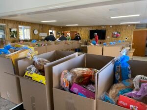 Our food distributions are held on the 4th Wednesday of every month. Volunteers are always welcome and appreciated! We begin the Tuesday before the next distribution at 9:00 a.m. to sort and pack the boxes; then on Wednesday at 9:00 a.m. to prepare for the food distribution which starts about 9:30 a.m.