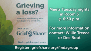 Lemon Cove Community Church will be hosting “Grief Share”, a weekly grief support group, that will be facilitated by Willie Treece and Dee Root on Tuesdays at 6:30 p.m. You can join in at any time! All are welcome!